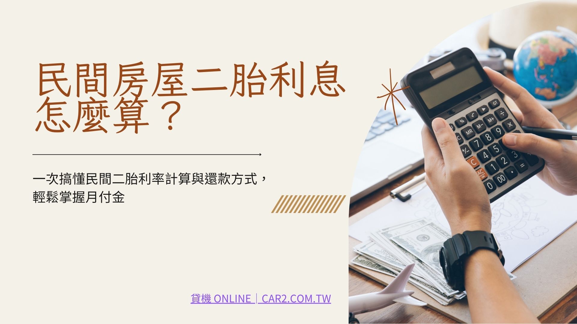 在申請民間二胎貸款之前,了解利息的計算方式非常重要。民間二胎貸款利率通常比銀行高,計息方式也很多樣。在這篇文章中在這篇文章中,我們會告訴你最新的民間房屋二胎利率、利息試算和注意事項,幫助你準確掌握每月的還款金額,避免因為利息計算不清而造成財務壓力,讓你輕鬆上手!